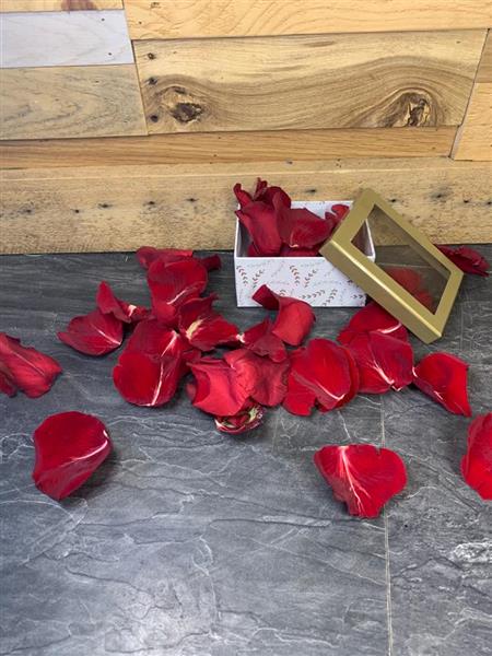 Add a romantic touch to Valentines with a gold box full of fresh Rose petals.