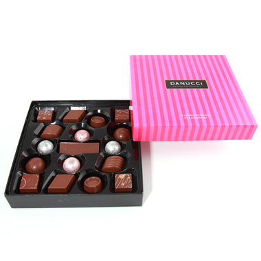 Compliment your flower delivery with a box of 16 handmade milk chocolates crafted with a special blend of couverture and the finest natural ingredients.